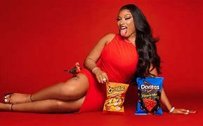 The aim of this cheetos flaming super bowl bill board ad is to increase sales as they have a popular artist "megan thee stallion" as shes a very popular singer and as we can see shes holding the cheetos crisp packet which tells the audience what crisp it is and she also vhas the doritos crisp next to her wh